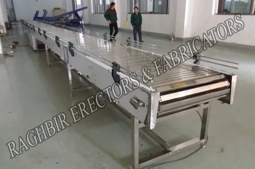 A Stainless Steel (SS) Slat Chain Conveyor is a heavy-duty material handling system designed for transporting bulky, hot, or abrasive materials in industries such as food processing, pharmaceuticals, packaging, automotive, and manufacturing. Its stainless steel construction ensures corrosion resistance, hygiene, and long-lasting performance, making it ideal for high-temperature and sanitary applications.